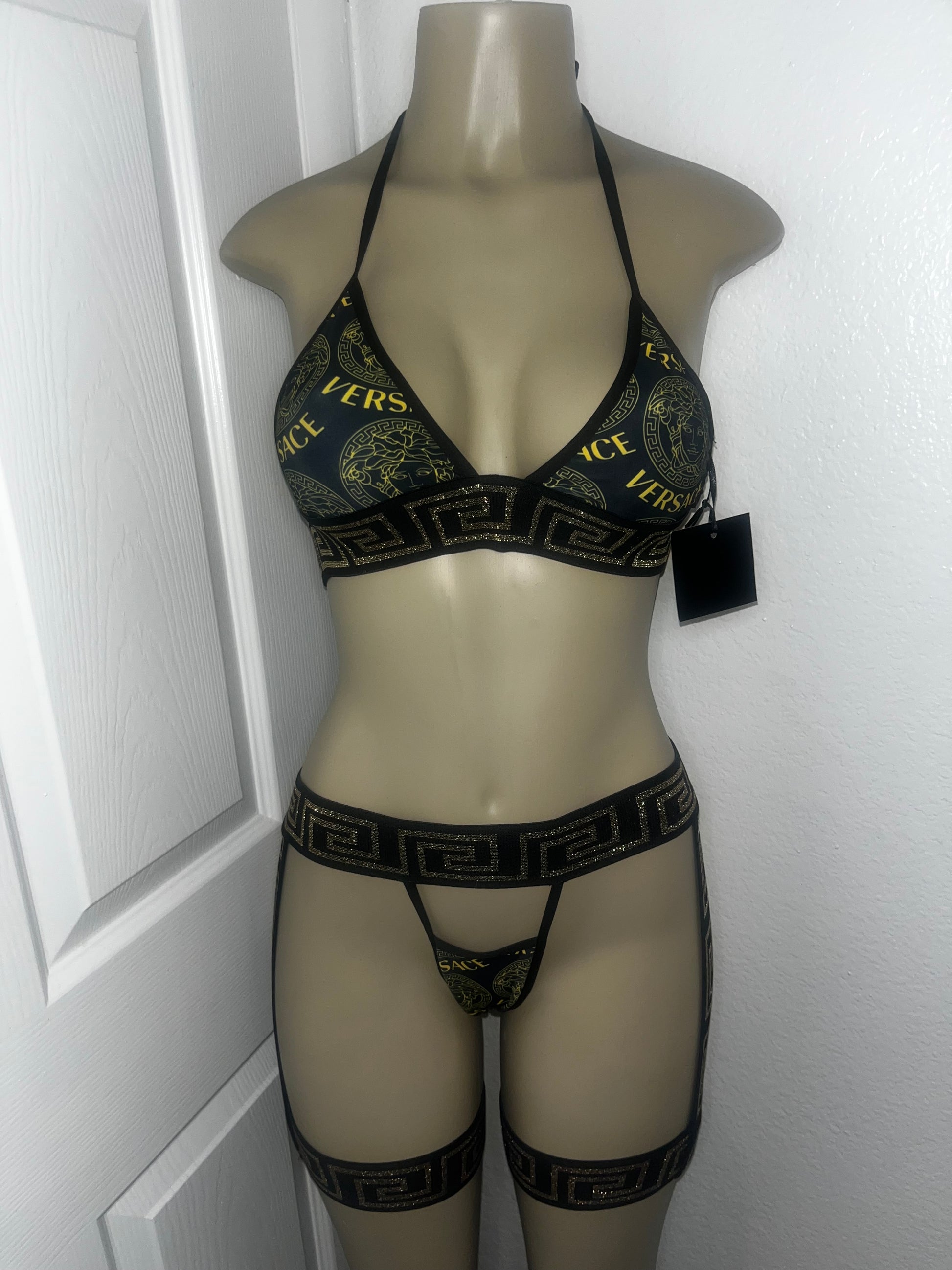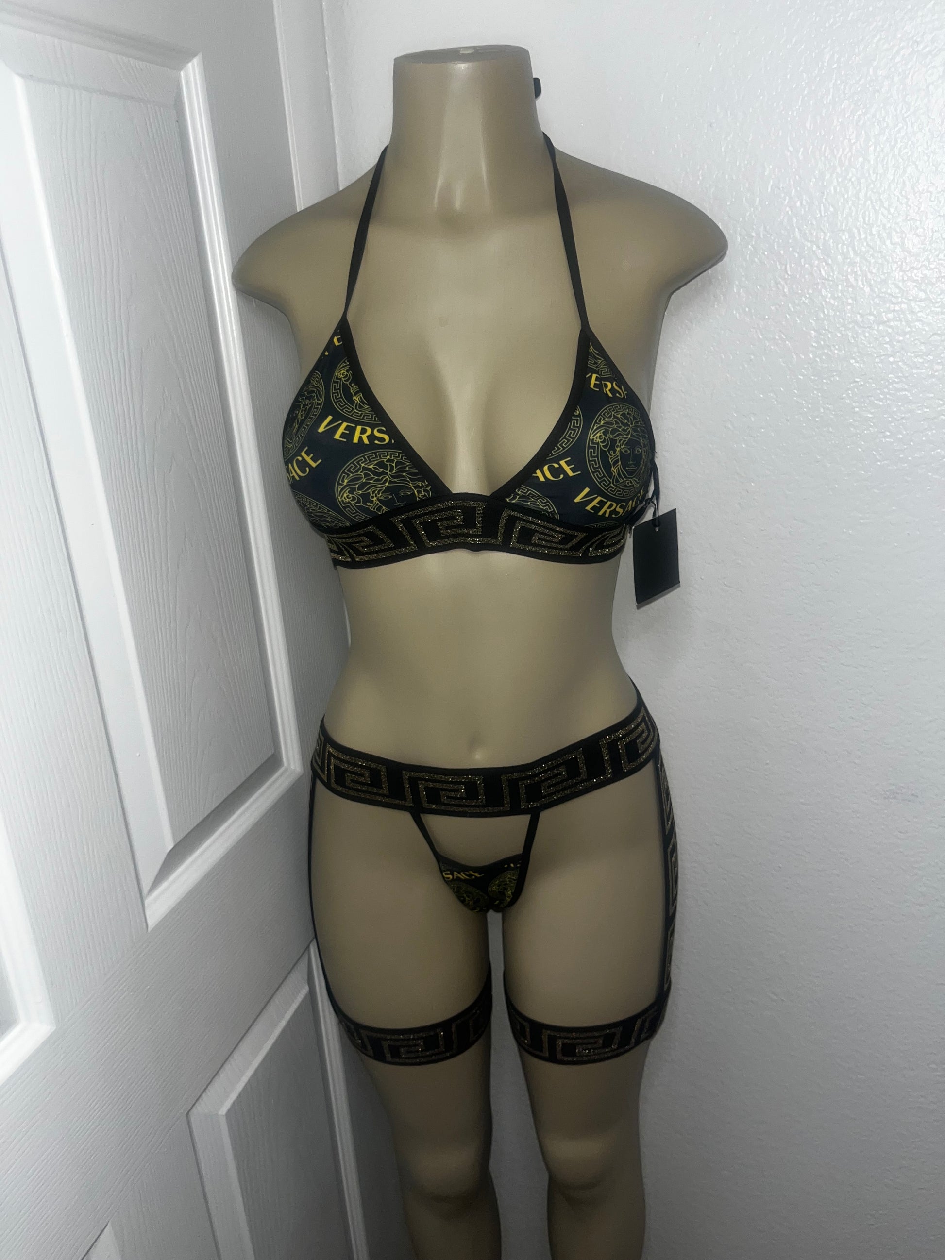 Dance wear set has loop holes for thighs