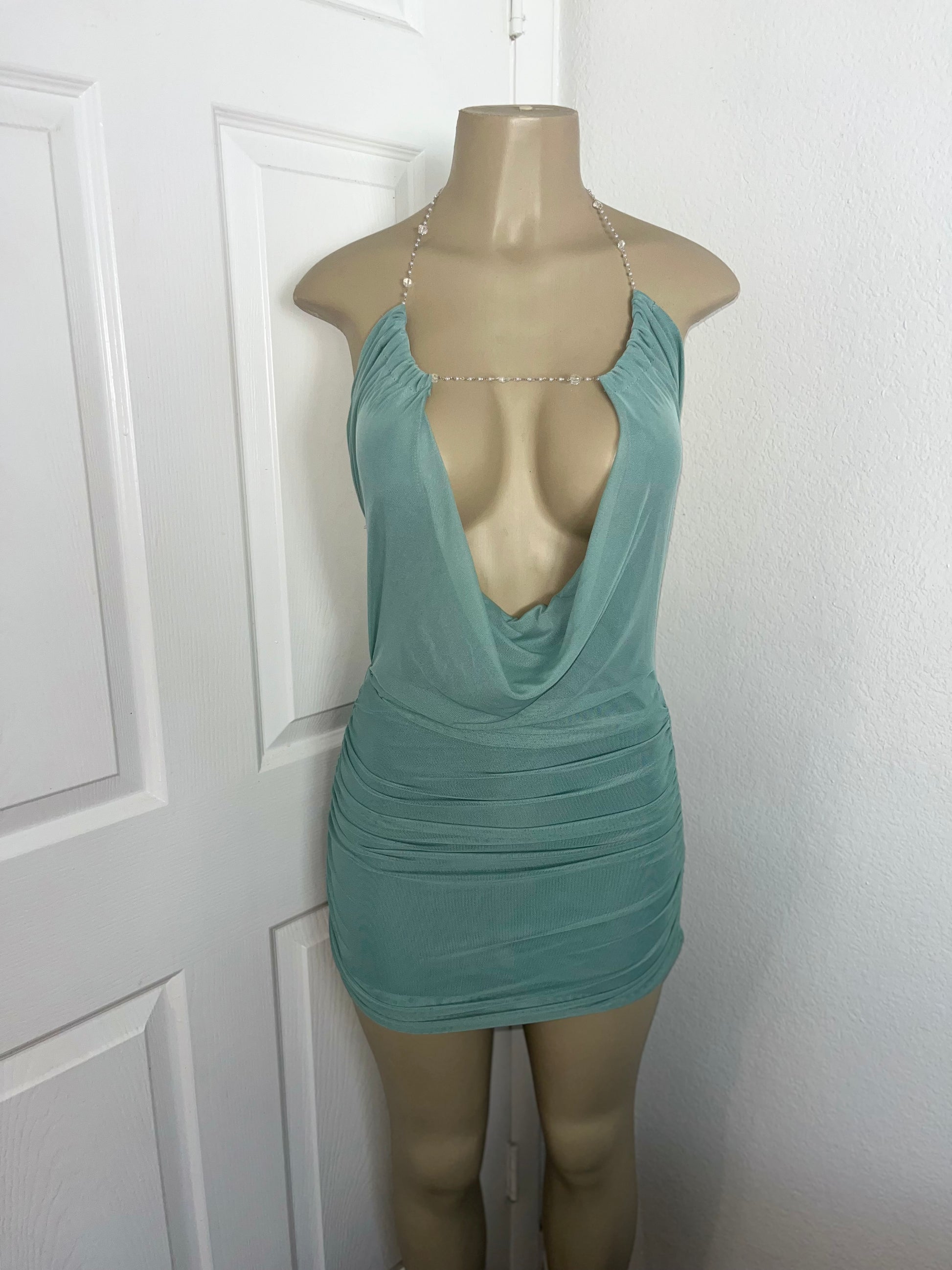 sage chain dress